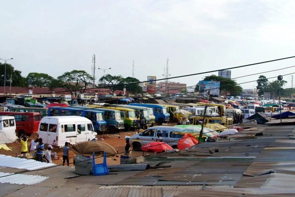 The bus depot with buses to Accra.